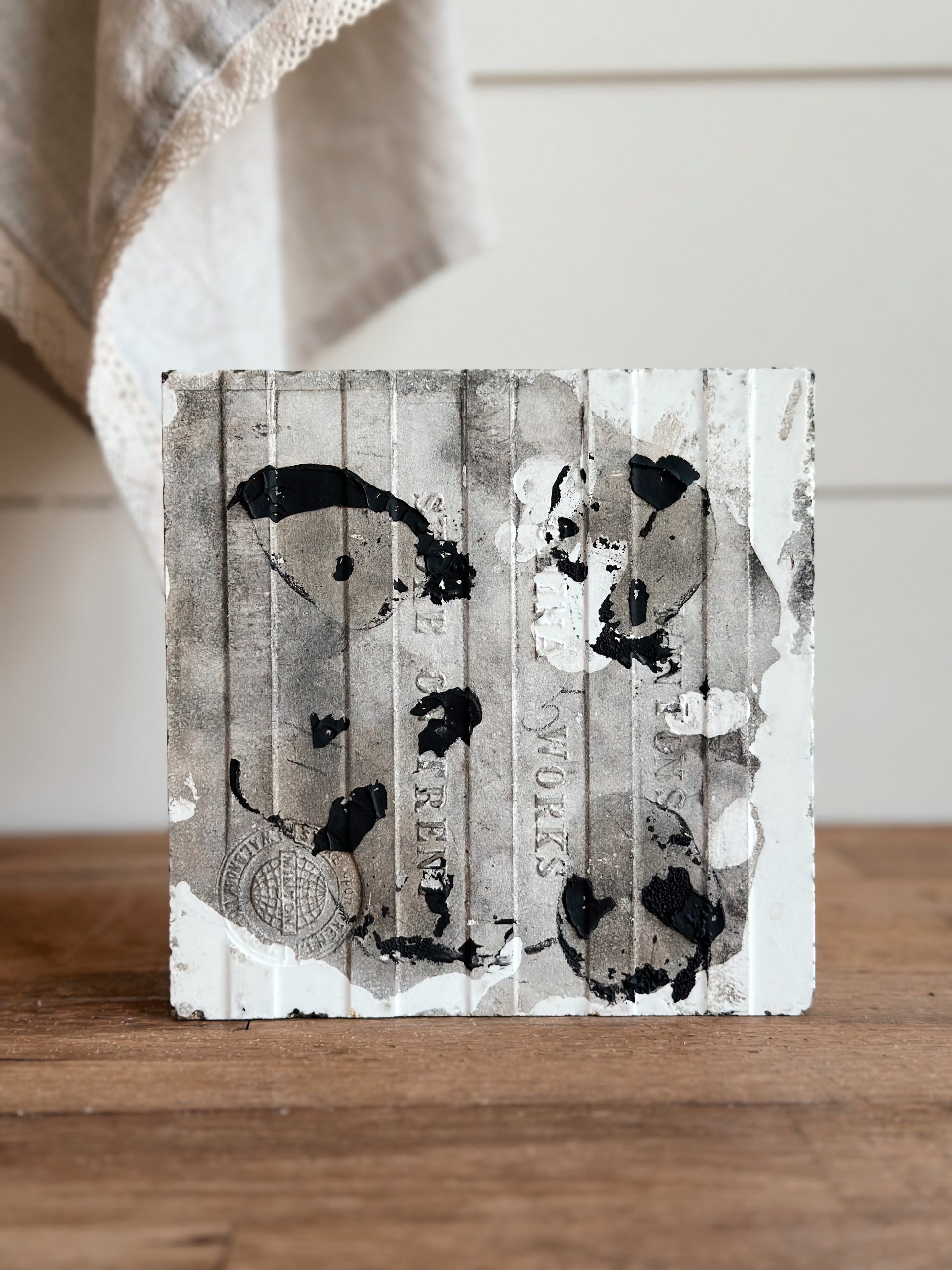 - This tile appears to have been removed from a home. It was likely part of a fireplace surround.