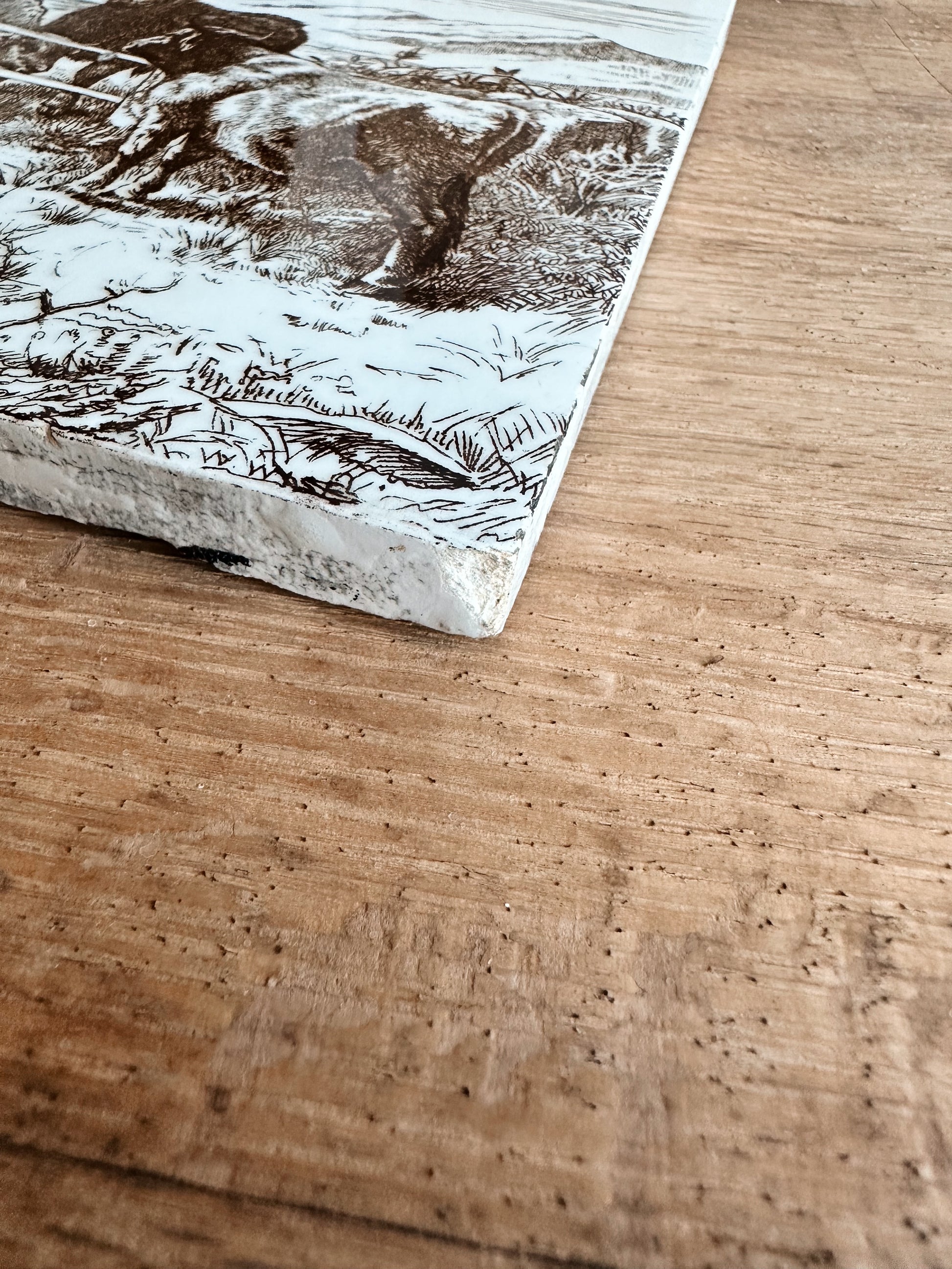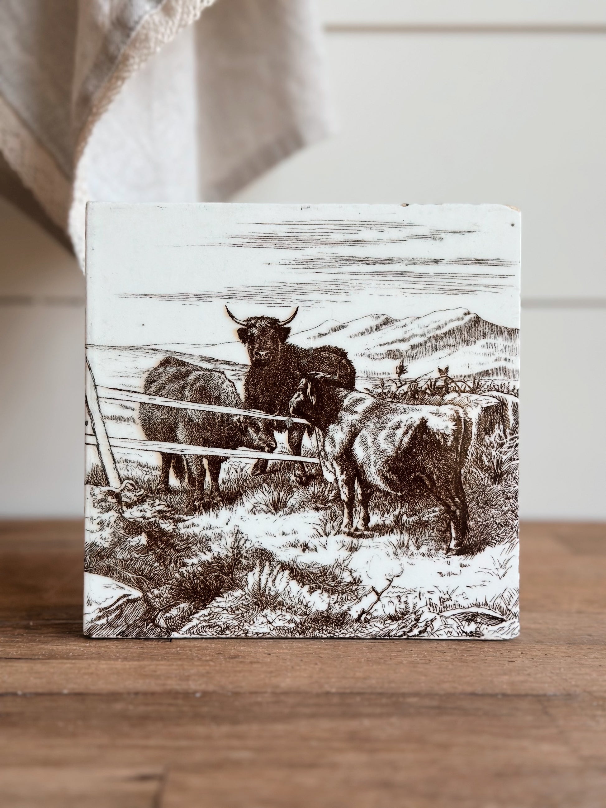 Antique MINTON William Wise Farm Animal Tile (bulls near fence)