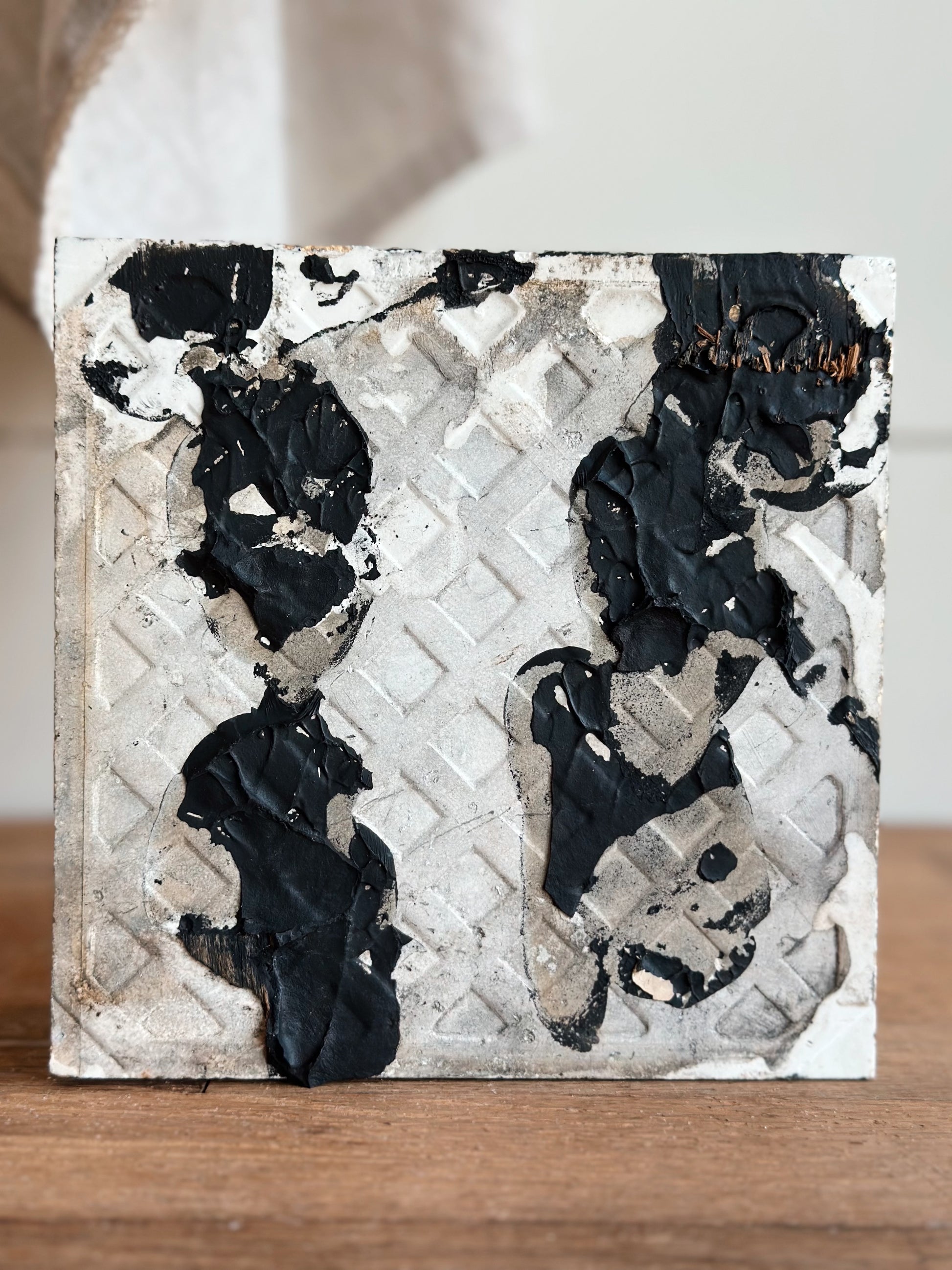 - This tile appears to have been removed from a home. It was likely part of a fireplace surround.