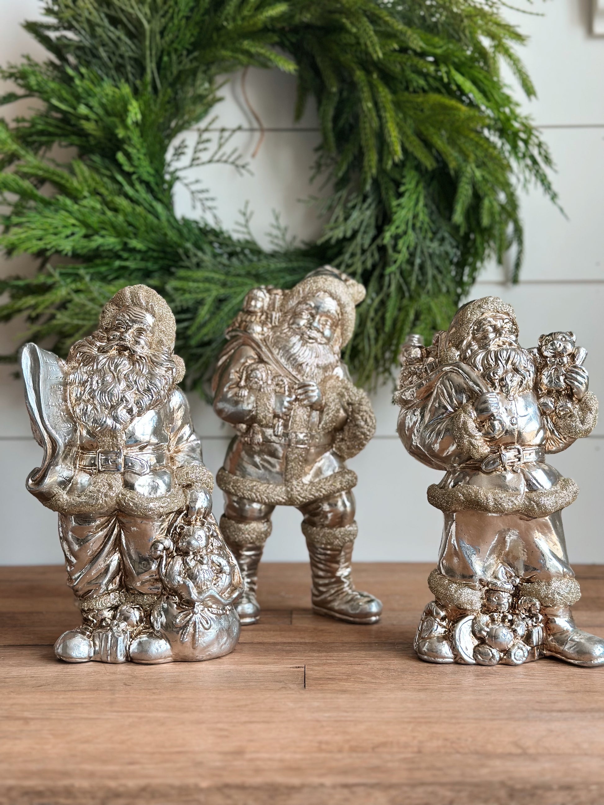 Antiqued Silver Santas