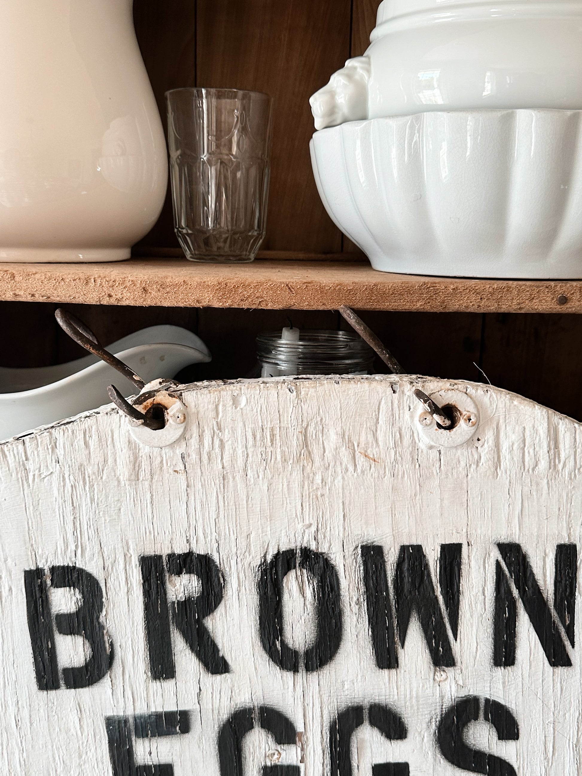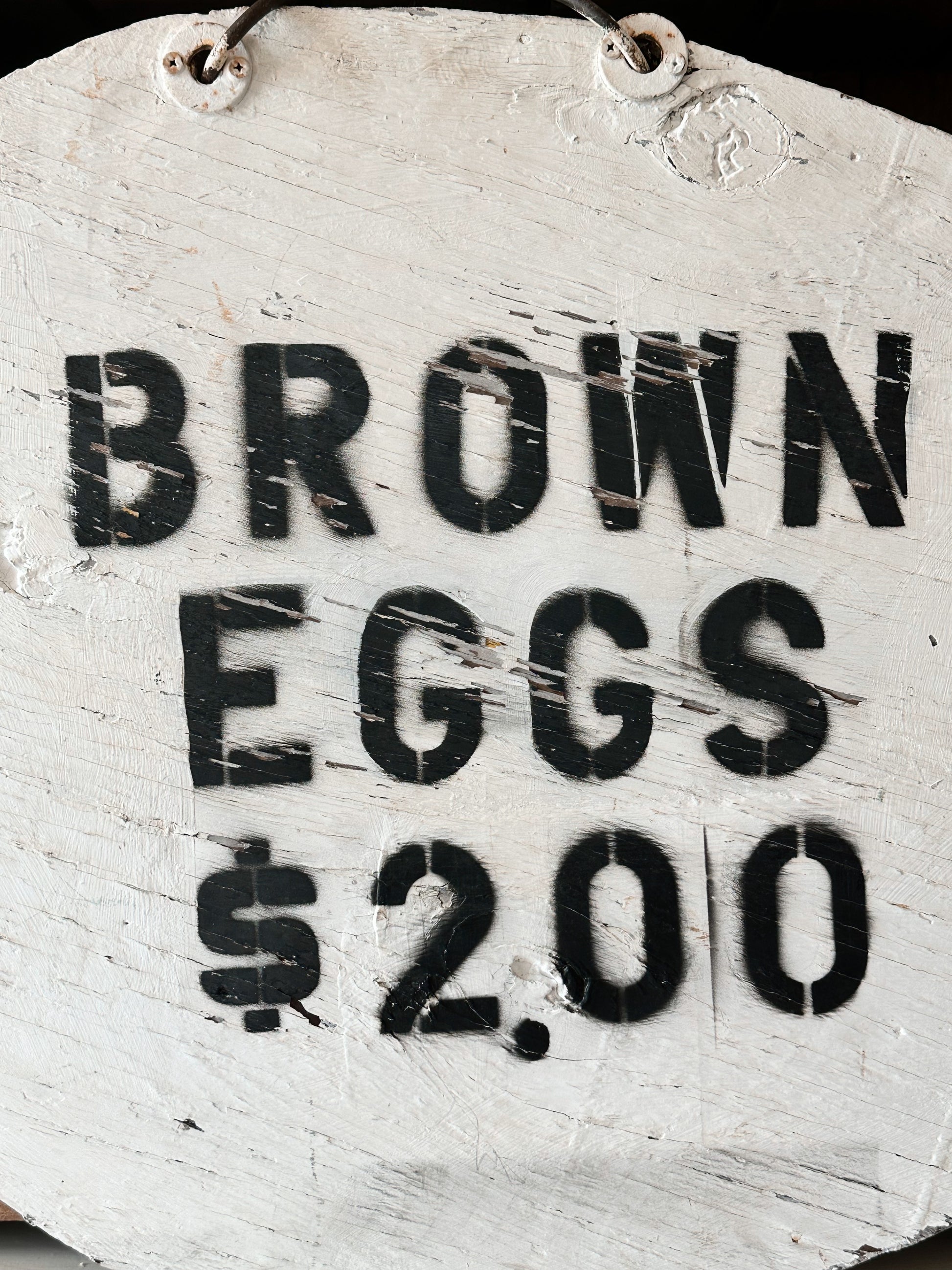 - The sign and hardware are old and it’s likely that it kept getting repainted as the price of eggs increased over the years. Farm fresh eggs were around $2 a dozen in the early 2000s