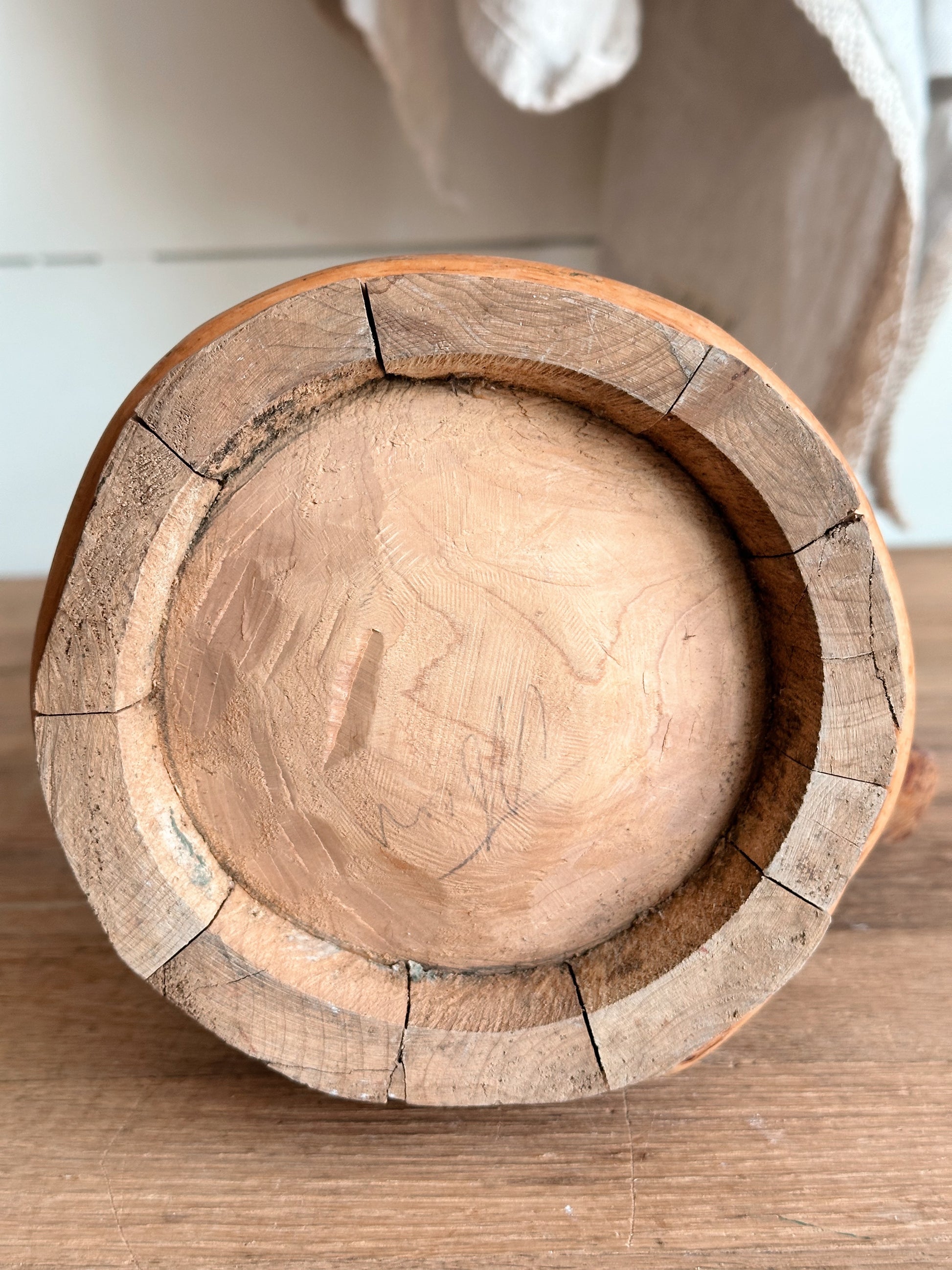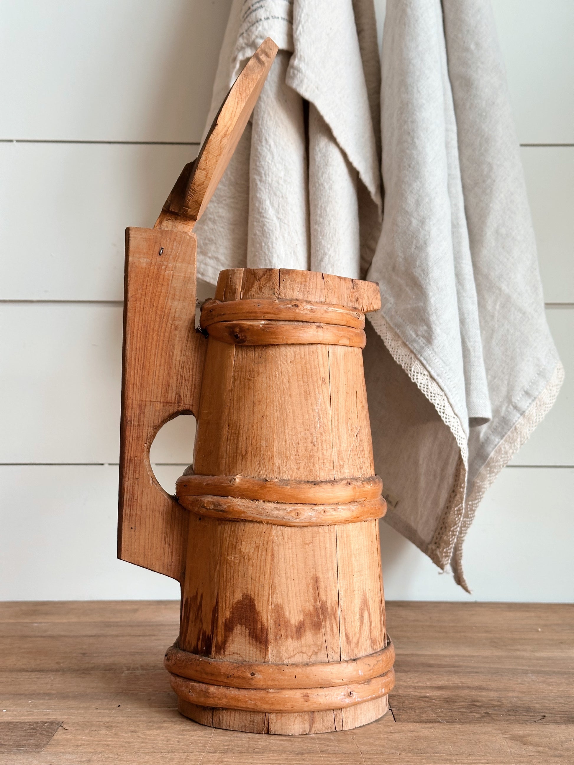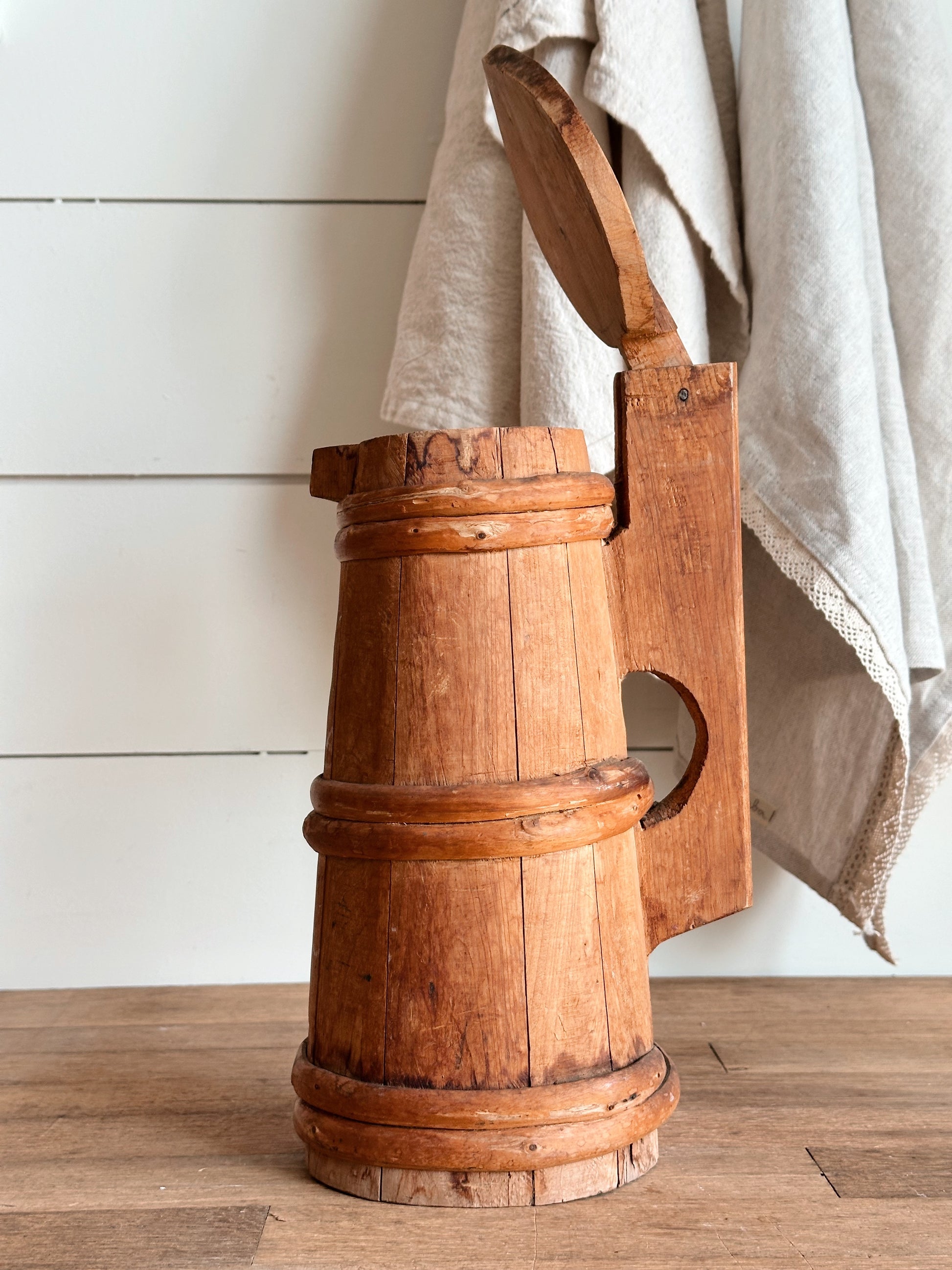 Vintage Folk Art Carved Wood Stein