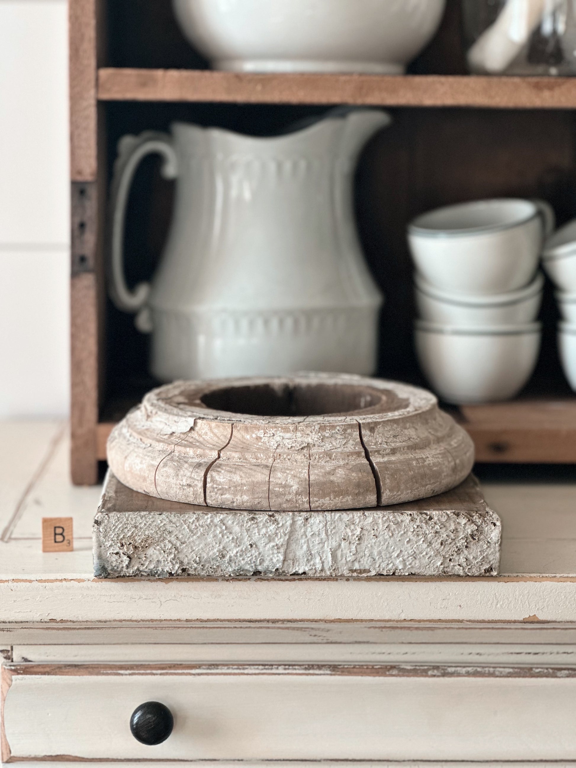 - This is an old wood piece with time worn patina and wear. See all photos