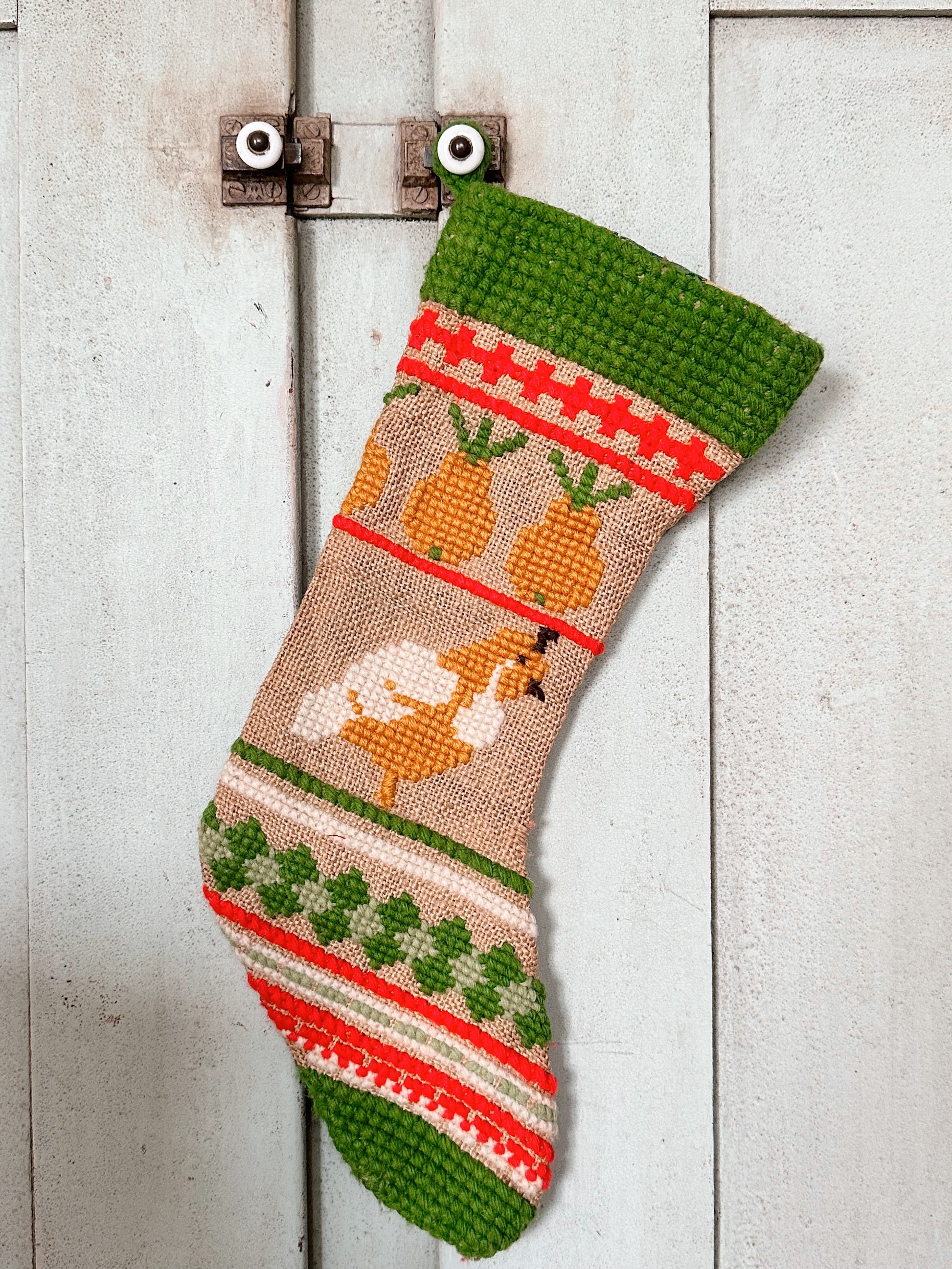 Handmade Vintage Stocking, Partridge in a Pear Tree