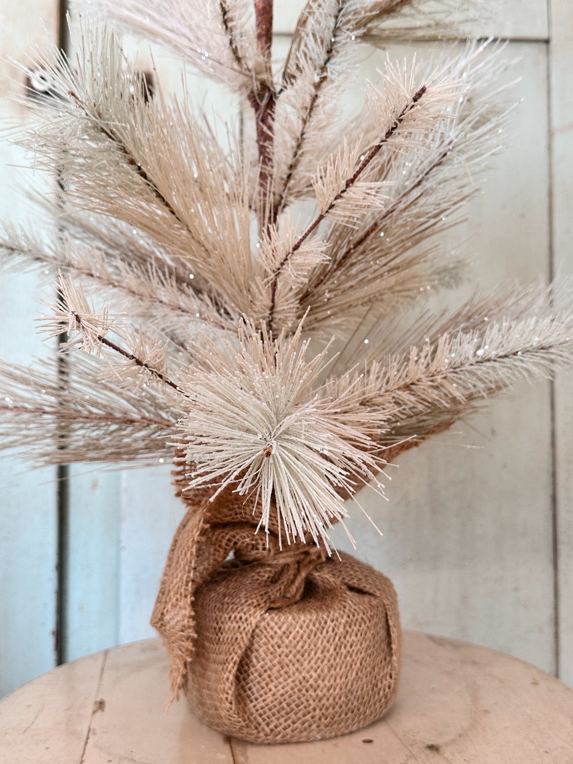 - Shades of light sage, cream and tan give this tree a vintage feel