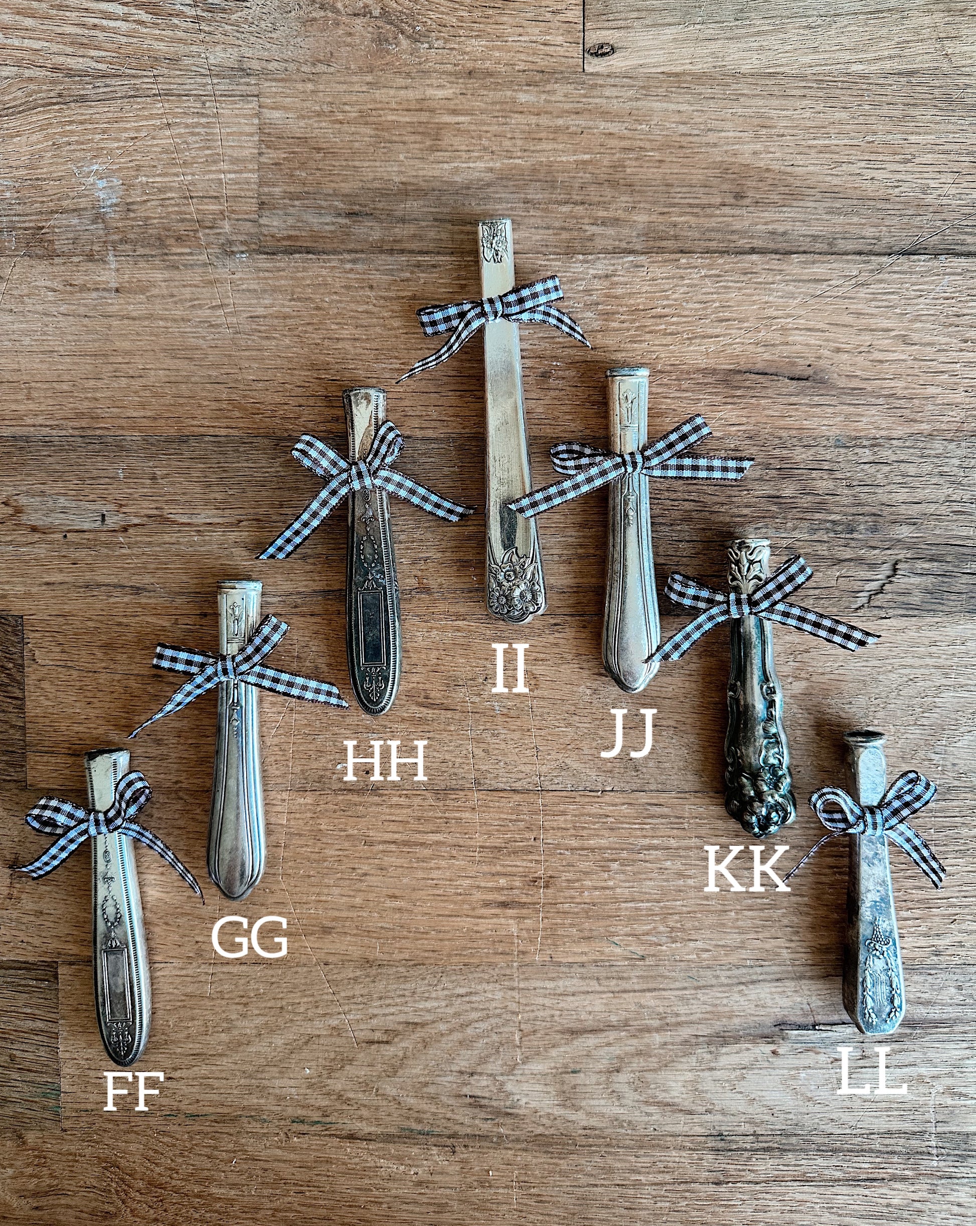 - Crafted from the handles of silver plate knives. The blades have been removed and the inside of the handles have been cleaned out.