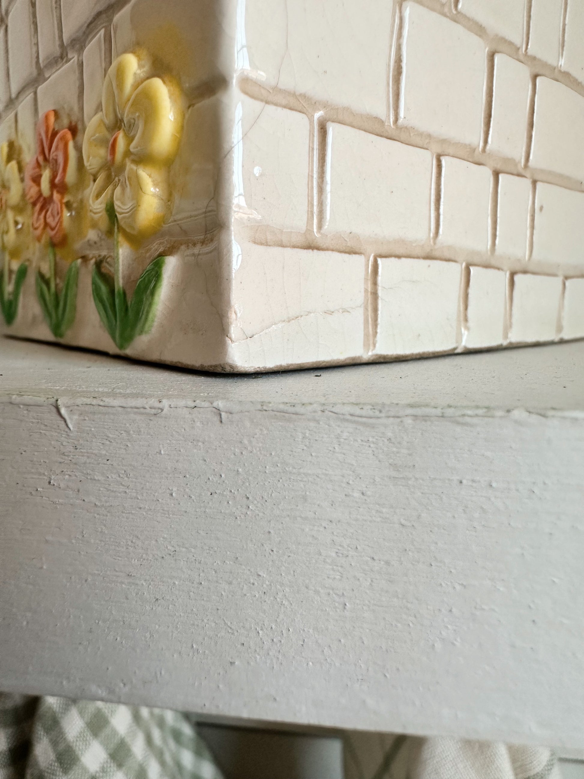 - There is what appears to be a deep scratch in the glaze on the back corner (see photos)
