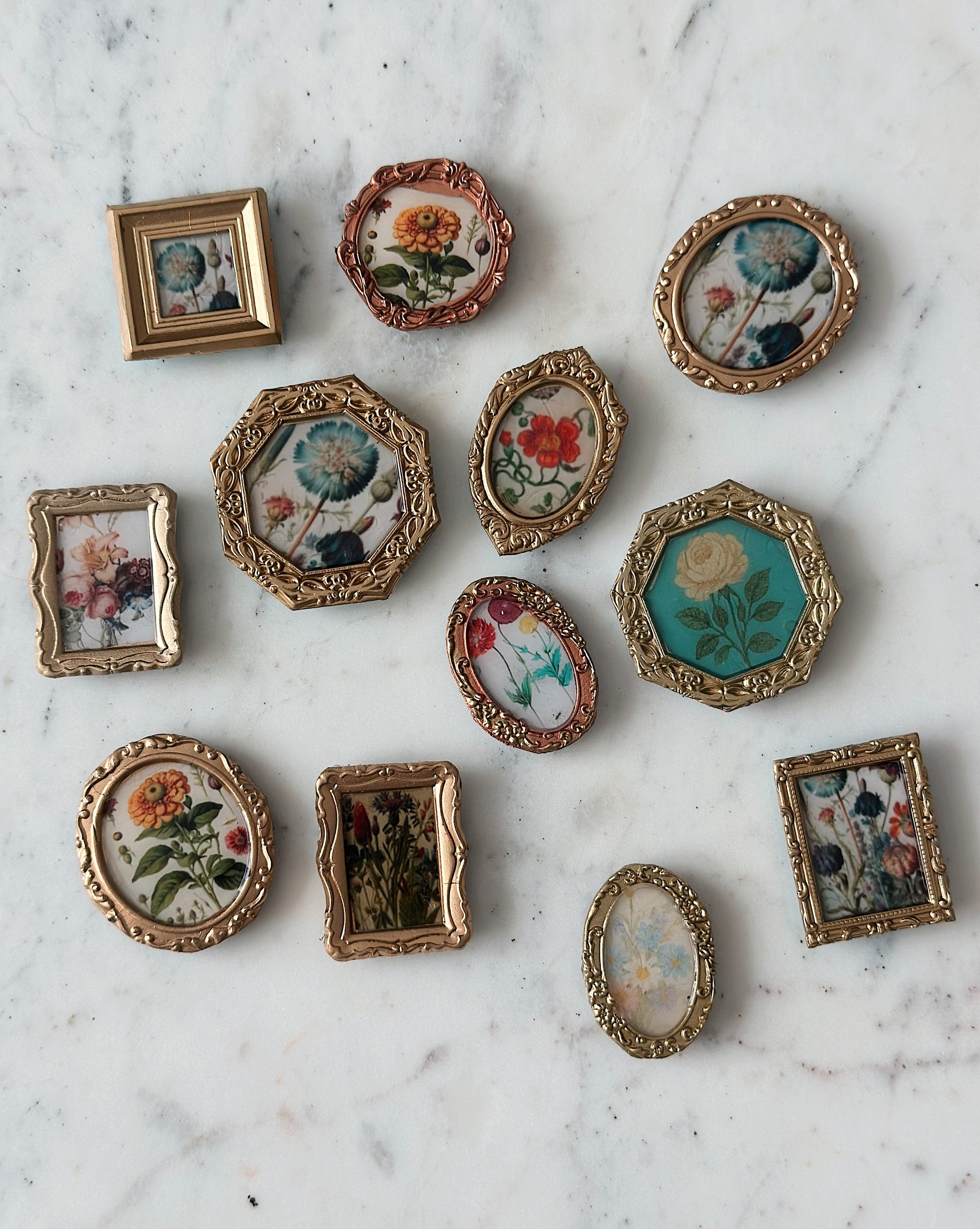 Itty Bitty Handmade Vintage Framed Floral Magnets (Set of 4)