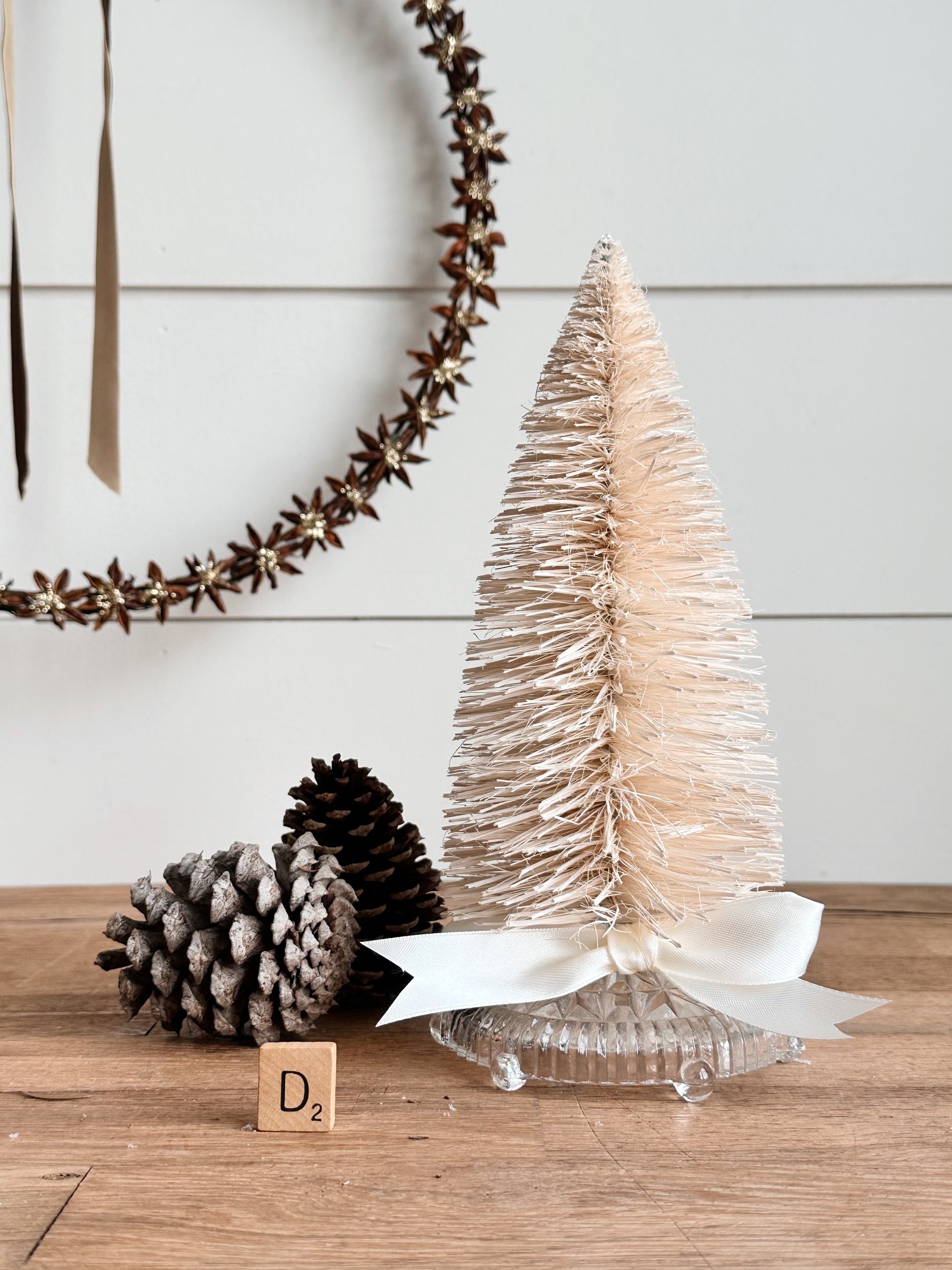 - This is a new sisal bottlebrush tree on a vintage glass base