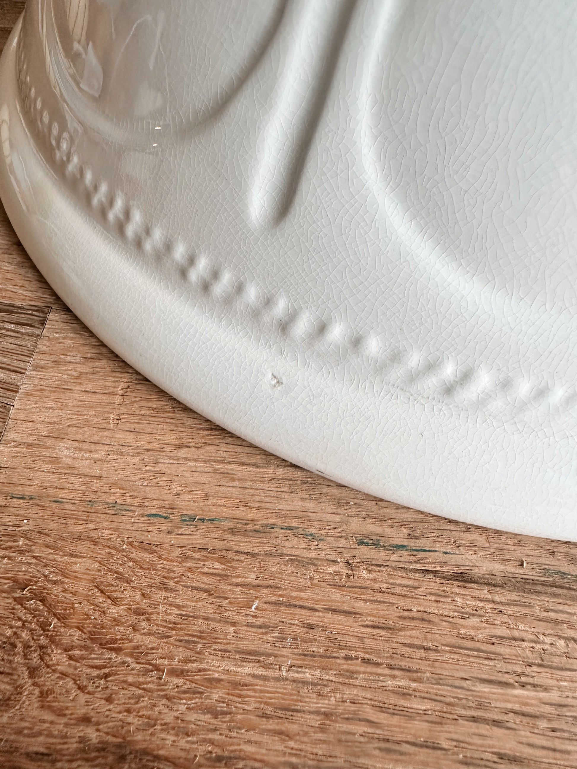 - One tiny imperfection on the side and some staining, otherwise practically perfect