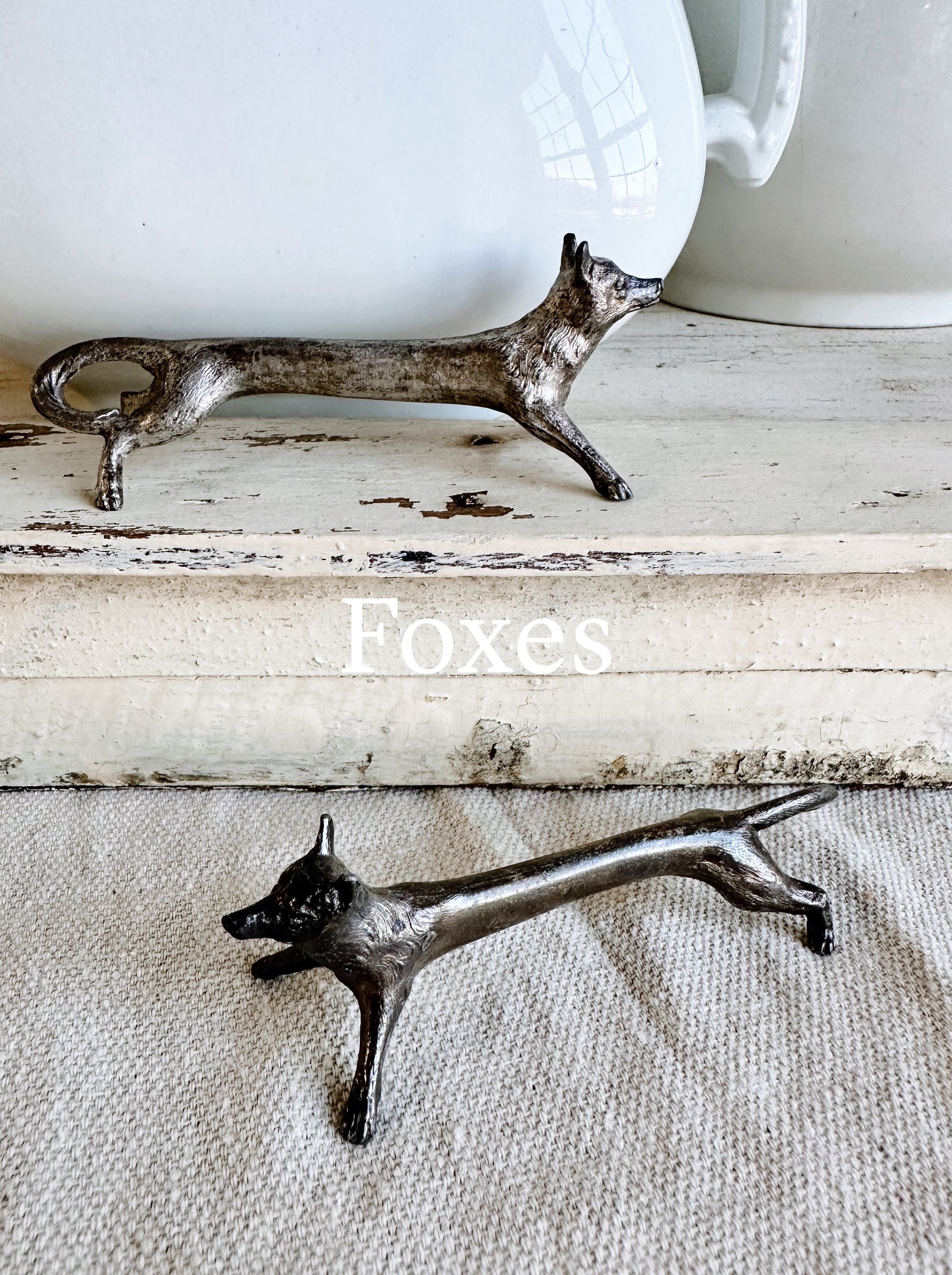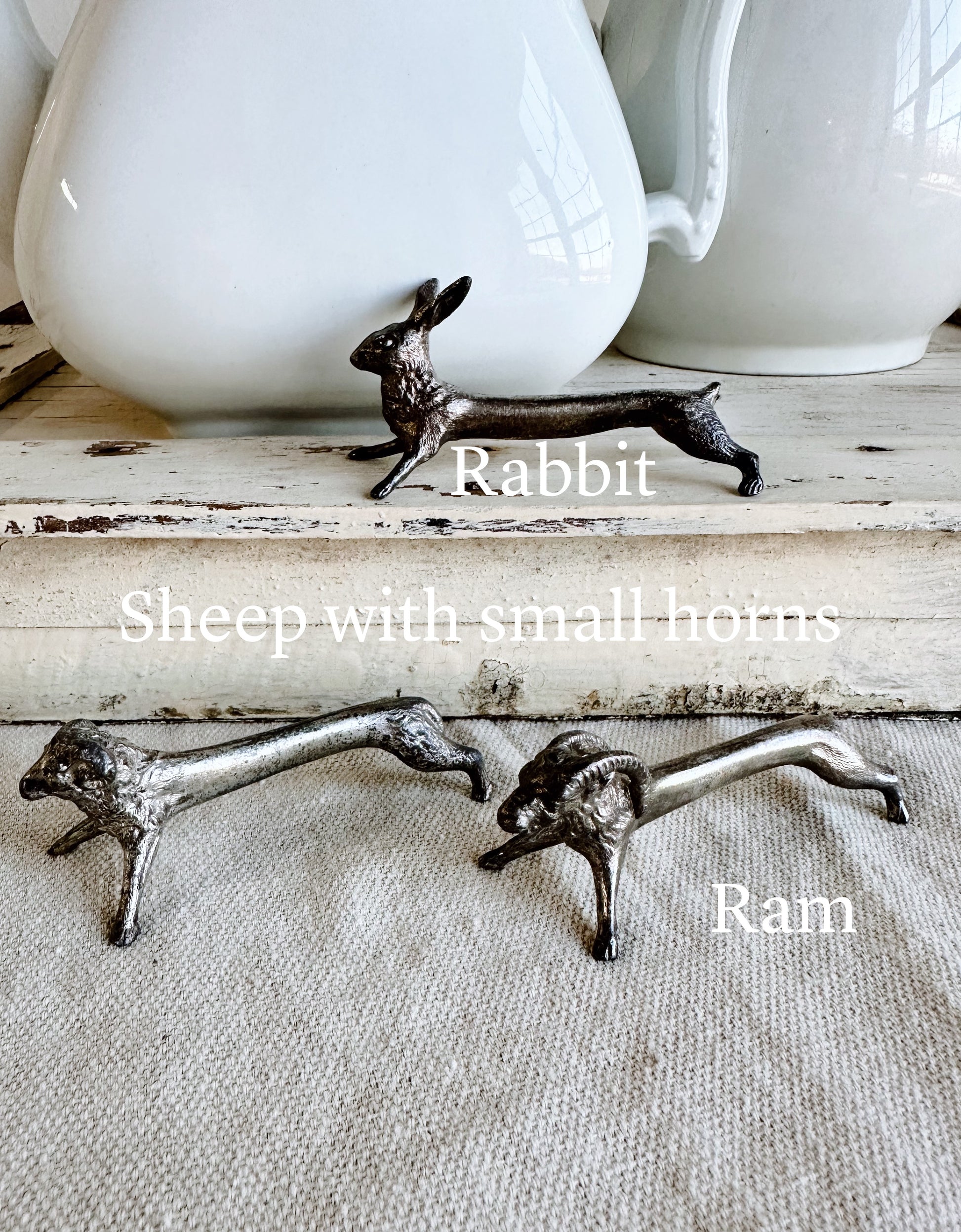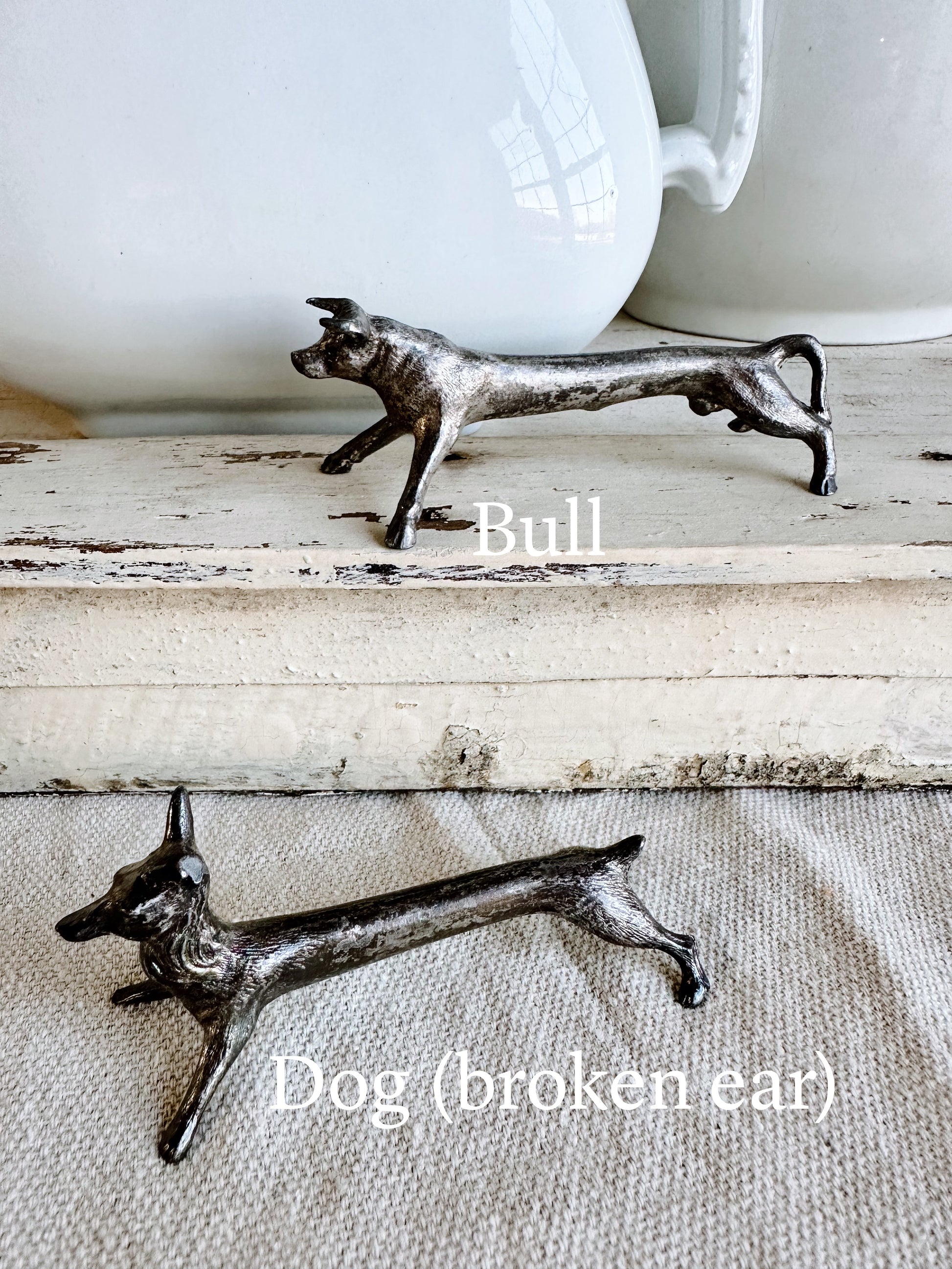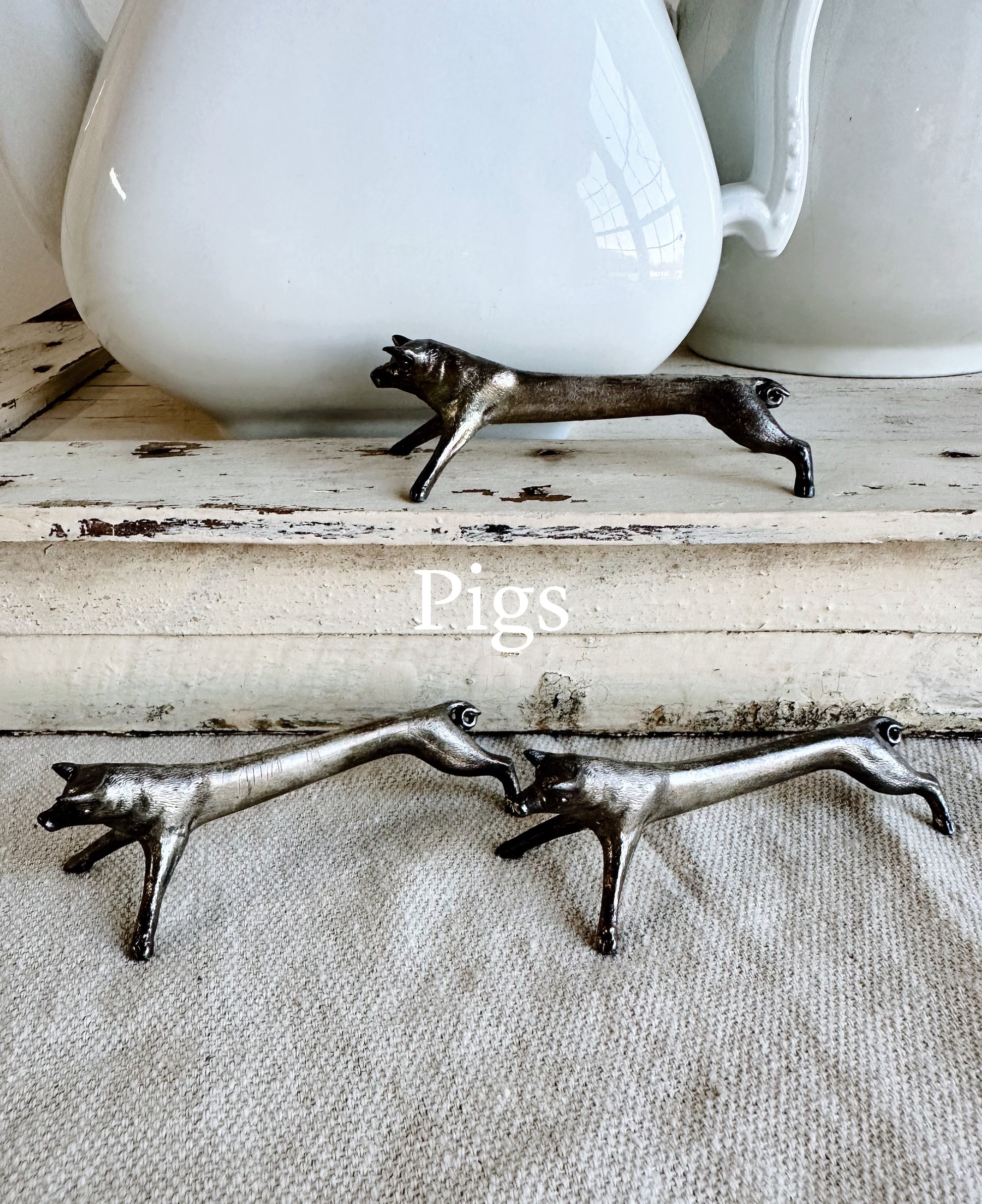 - Heavy pewter knife (or utensil) rests with pretty patina