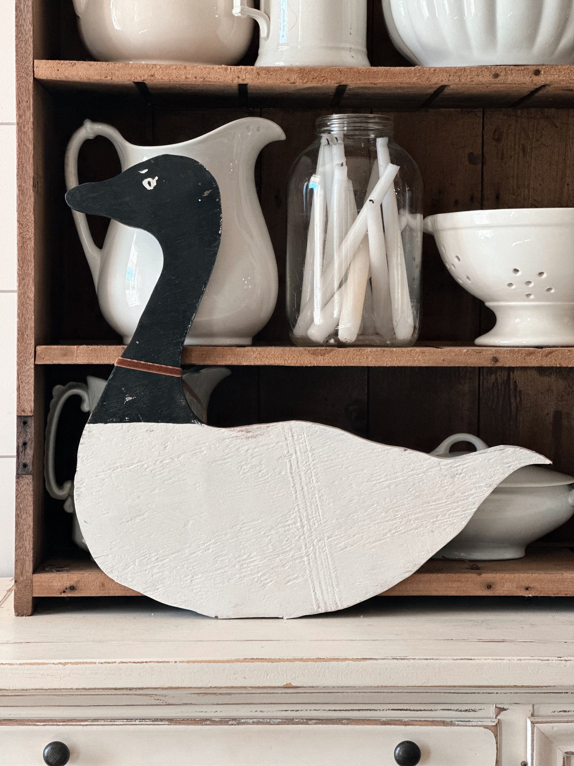 - The decoy originally had a wood stake at the bottom for planting into the ground. It has been removed to make the goose better for decoration purposes